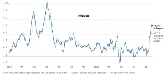 美国过去半个多世纪通胀变化。2022年6月达到9.1%,创造40多年来的新高