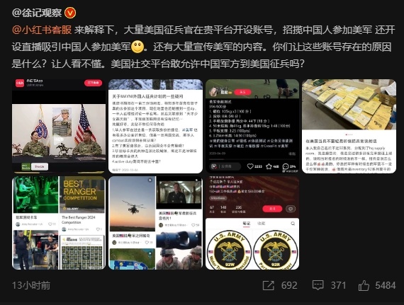 因为我国某个社交媒体平台上,居然有大量的美军征兵官的账号,面向中国人招募美军新兵。更甚至于,美军的征兵官还在该平台上开设了直播,以宣传美军。