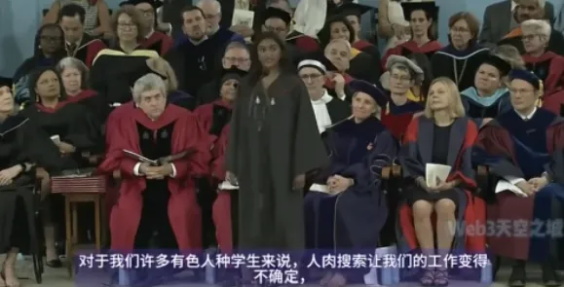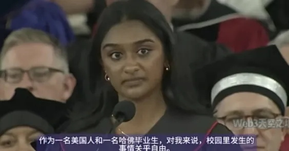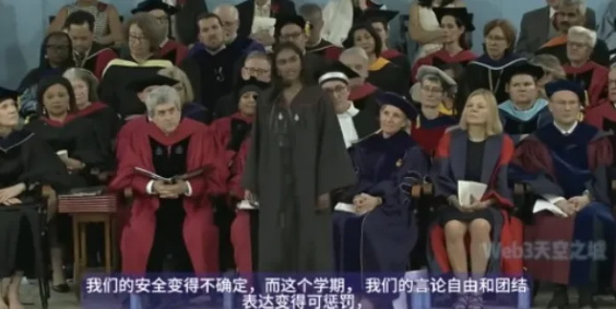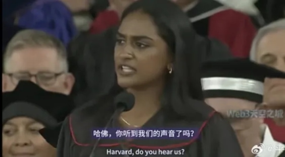 这位演讲的哈佛女生,是一位南亚移民的后代,她的父母辈对美国是非常向往的,她本人对于哈佛也是非常推崇的,她以能够在哈佛读书并且毕业而自豪……这本来是标准的“美国梦”的一部分,但现在她不这么想了,她从巴以冲突中看到了美国的混乱和撕裂,看到了美国统治阶级的双标和虚伪,她开始怀疑——我到这里来,到底学了什么?来学习种族歧视、种族灭绝?