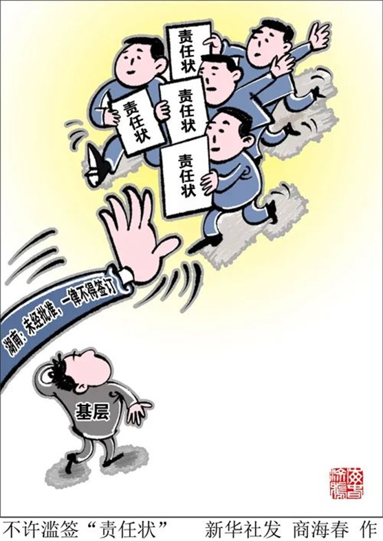 当然,放权还权并不代表把上级应该承担的责任转嫁和推卸给基层。现实生活中,有的机关口头上说不再额外增加基层负担,但一味把压力和责任推卸给基层,热衷于与基层签订“责任状”,以便成为日后自己的“免责单”。这样看似在倒逼基层干事担当,实则让基层干部压力过大。不少基层干部反映,我们不怕吃苦、不怕加班,怕的是担雪填井、徒劳无功;我们也不怕担当、不怕问责,怕的是盲目担当,被随意问责。这就要求各级各部门少搞“一刀切”,少签一些“责任状”,少弄一些“一票否决”,不让基层干部背着“一出事就白干”的思想包袱,要加大正向激励,鼓励担当作为,把基层打造成知责、负责、尽责的奋斗热土,树立起重实干、重实绩、重担当的鲜明导向。