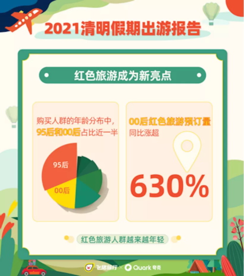 在刚刚过去的清明小长假期间,红色旅游景区的游客量呈井喷态势,且年轻化趋向显著。据飞猪平台统计,“95后”和“00后”占比近50%。“00后”的红色旅游预订量增速最快,同比增幅超过630%。同程数据显示,年龄在20岁至39岁的游客占红色旅游整体游客的半数以上。