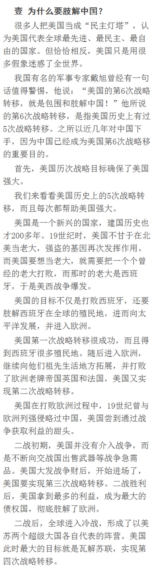 美国不仅有肢解俄罗斯计划,也有肢解中国的计划,我们要警惕!