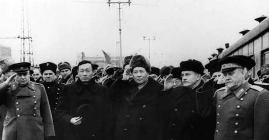 1949年12月16日中午12点,毛主席的专列抵达莫斯科北站,即雅罗斯拉夫车站。苏联部长会议副主席莫洛托夫、苏军元帅布尔加宁在车站迎接毛主席。