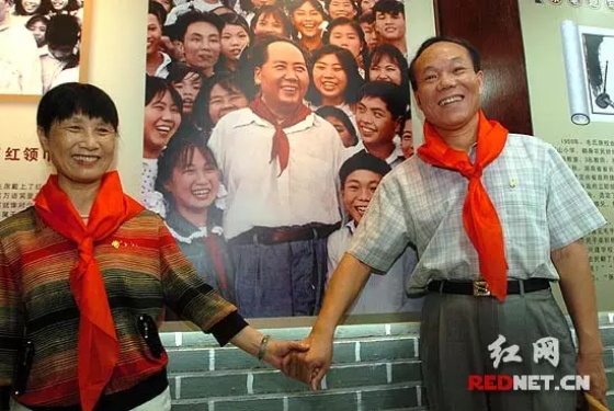 26日上午7点多,“毛主席来了,毛主席来了”的欢呼声响彻韶山学校。敬礼,献花,给毛主席戴红领巾。在激动的泪水中,蒋含宇和彭淑清完成了幸福的任务。