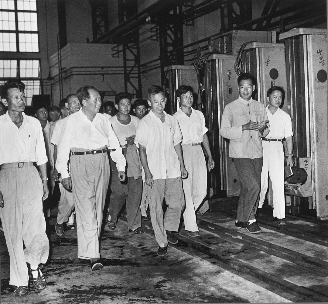 一九五八年九月十五日,毛泽东视察武汉重型机床厂。