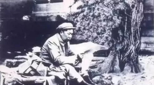1954年春,毛主席在长陵棱恩门西侧 休息看报