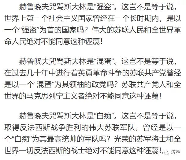 简单说,赫鲁晓夫否定斯大林,实际上也否定了他自己。