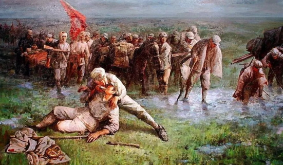 路过泥潭时,身边的战士接二连三地倒下,但大家只有一个信念,坚决不能掉队。眼看牺牲的同志越来越多,总司令朱德让人把自己的坐骑杀了,分给同志们做口粮。