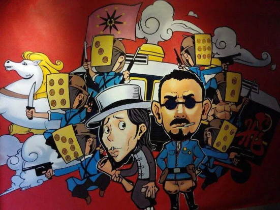 突击队穿过火墙,冲进泸定城,同川军巷战。