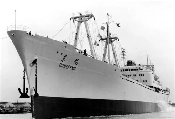 1960年4月15日,新中国第一艘自行设计的万吨级远洋货轮“东风”号下水
