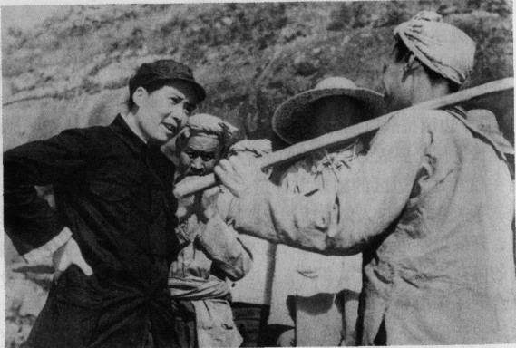 毛泽东于1939年在延安杨家岭同农民交谈