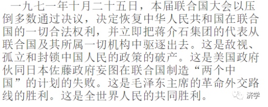 乔冠华首次作为正式成员国代表在联合国大会发言时指出:
