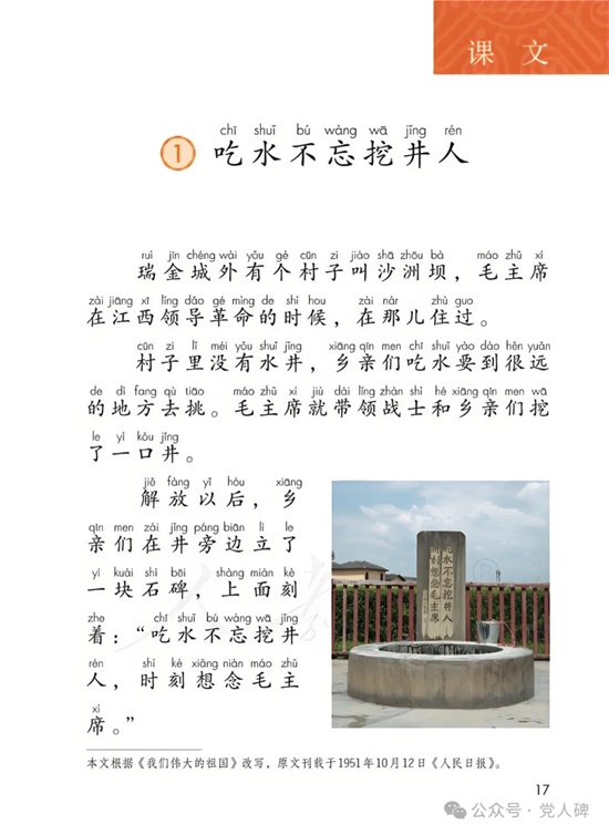 这就是《吃水不忘打井人》这篇百字课文背后的微言大义。
