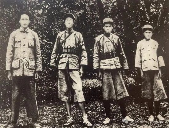 1934年,毛泽东和警卫员在瑞金(左二起:吴光荣、陈昌奉、戴田福)。