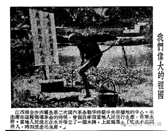 1950年11月, 为了迎接毛主席派来的中央南方革命老根据地慰问团,沙洲坝人民对水井进行了全面整修,在一块木牌上写下今天我们耳熟能详的这句话: