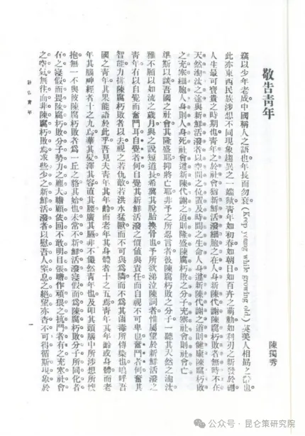 【陈独秀先生主办《青年杂志》中对青年启蒙的文章(胡澄藏书)】