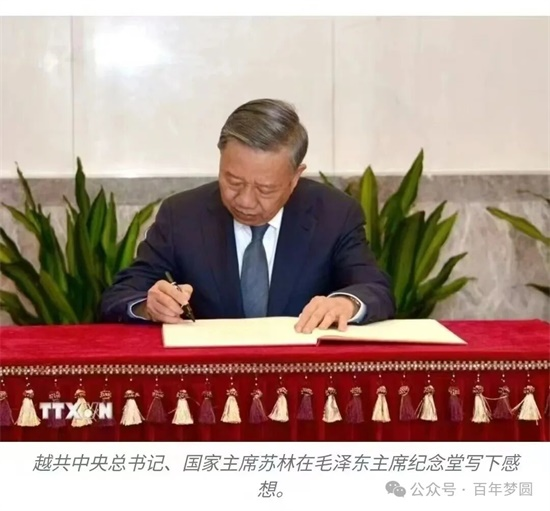 越通社披露,苏林担任越共总书记、国家主席后,首次出访来华,8月19日一到北京就瞻仰了毛主席纪念堂,祭拜了毛主席。(点击可看:越南央媒突出报道:越南新领导瞻仰毛主席纪念堂)