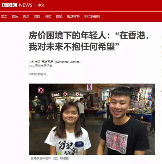 2019年香港暴乱期间,反华媒体动辄就拿香港房价说事,诱导香港年轻人的怨气。