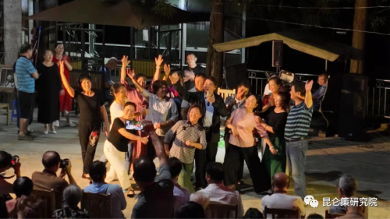 阳明山乃南岭余脉,位于湖南双牌。山地海拔1000米以上,主峰海拔1625米。群山连绵,山峰环立。登峰远眺,南临九嶷,北望衡岳,西睹永州古城和蜿蜒潇湘,无不历历在目,尽收眼底。阳明山是红色革命之山。大革命失败后,1928年,在中共党员李用之、陈秉荣、何祖跃等人的领导下,改造和发展了阳明山周文农军。农军有人3000余,枪支1000余。周文农军以阳明山为依托,沉重地打击了国民党在永州的反动统治。1928年11月,国民党《湖南全省清乡总报告书》哀叹:周文农军“历经围剿,未能扑灭,实为湘南心腹之患。”以至要求增派兵力“务必以大部会同粤桂赣三省先将毛泽东、朱德、周文各股肃清。”在国民党的重重围剿下,周文农军于1931年归于失败。1934年8月初,任弼时、肖克、王震率领红六军团作为中央红军先遣队开始长征。8月中旬进入阳明山地区,消灭了国民党防守阳明山之敌。西渡湘江未果后又折回阳明山,任、肖、王等首长曾决定在阳明山建立游击根据地,但因阳明山“人不满六千,谷不上万担”,更由于国民党军的企图合围,红六军团才主动撤离阳明山。阳明山是以和促统之山。阳明山自古就有“北有庐山,南有阳明”之说,文人骚客多有吟咏,形成了独具一格的阳明山“和”文化。蒋介石败退台湾,雅爱台湾草山,又忌草山有“落草为寇”之意,于是改草山为阳明山。有了这层因缘,改革开放后,阳明山以“和”文化为纽带加强了与台湾的联系,被中央和国务院台湾工作办公室命名为“两岸和平交流基地”。前国民党主席连战、吴敦义、洪秀柱等曾亲登大陆阳明山,为以和促统付出了一定的实际行动。阳明山是旅游休闲之山。当地地方志云:“阳明山,名山也。荒蟠百里,秀齐九疑。”又云:“其麓险绝,几疑无路。有银沙十里,鸟道盘折,上与天齐。及登顶峰,左衡右疑,极目千里,身在云际,超然出尘。”阳明山层峦叠嶂、高与天齐,飞瀑淙淙、泉水叮咚,有32溪、84潭、18可观瀑布。有万亩杜鹃花海、十万亩竹海、流泉飞瀑、奇峰怪石、云山雾海五大奇观。情侣石、八戒望月、大禹试剑石等情形并茂;恋人竹、夫妻树、阴阳树、石中树等妙趣横生。山泉清冽甘甜,万寿寺古井酷暑不竭,大雨不溢,饮之回味无穷,誉为“阳明圣泉”。白云寺四面奇峰妙岭,天然生成一巨大龙首,龙角、龙鼻、龙须栩栩如生,令人浮想联翩。山脚的竹、山腰的原始次森林、山顶的杜鹃花构成了奇特丰富的生态画卷。境内森林覆盖率达96%,原始次森林分布数万亩,华南最大的华东黄杉和红豆杉群落分布其中;境内年均气温14.2℃,空气清新无比,有“天然氧吧”、“湘粤凉岛”之称。炎夏时节,山外酷热,可是阳明境内,凉风习习、仙气阵阵,直叫人仿笪重光为之赋诗:五云遥指山中央,金鼎曾传时后方。峰回路转空有月,隐身其中不知热。因携竹杖闻仙气,焉知人间愁与烦?应笑我曹身是梦,白头犹是学诗狂!阳明山是富民爱民之山。阳明山民,点土成金,将每亩耕地的年产值创造到了40000万元以上。阳明山民,吃上了旅游饭,发起了旅游财,基本形成了“食住行游购娱”的旅游格局。阳明山民,基本鼓起了腰包,住上了别墅,过上了小康生活。基本富裕起来的阳明山民,吃水不忘挖井人,幸福感谢共产党。于是,位于阳明山麓的东菖源村民就发出了这样的倡议:为迎接党的二十大召开,特倡议开展联欢晚会活动,内容为歌唱共产党、歌颂毛主席、歌咏新时代。凡村民和游客都可报名参加。担任晚会伴奏的是来自零陵古城的“夕阳红”乐队。这虽然是一支民间乐队,但却是有一定专业水准的乐队。电子琴操盘手陈家义和小提琴演奏者肖永胜曾经在专业文艺团队工作过,所有的乐器演奏者都有四十年以上的演奏经历。电子琴铿锵,小提琴悠扬,二胡如怨如诉、余音绕梁。虽然未怎么经过磨合、排练,但与所有节目配合得基本默契,为晚会的成功提供了音乐,得到了晚会参与者的高度赞扬。大合唱《没有共产党就没有新中国》《团结就是力量》拉开了晚会的序曲,也给晚会定下了基调。台上高声歌唱,台下百人唱和。仿佛再现的是古人歌咏《下里巴人》时的情景,又分明是当今“下里巴人”对中国共产党的拥护和对新中国的热爱,更分明唱出了“下里巴人”自己的骄傲和力量。紧接着登场的是这台晚会的真正“主人”——东菖源村民的表演。他们跳起《家乡的明月》,讴歌自己的家乡。他们的父辈可能见着生人还木讷、羞涩,他们白天或在种着菌种,或在种地锄草,现在他们却在自己家乡跳起了广场舞。虽然舞姿尚显僵硬,没有了那么些阿娜多姿,但从他们身上看到了新时代中国农民的变化,看到了新时代中国农村的发展方向和希望。最能代表“主人”的水平和特质的是夏增莉大姐表演的双牌渔鼓《双牌县城风光美》。夏大姐将双牌的人杰地灵、景色秀丽,物产丰富、市场繁荣,尤其是把家乡人民在党的领导下艰苦奋斗、脱贫攻坚的精神比较传情地表演了出来,将晚会推向了一个小高潮。晚会歌颂共产党。陈辉权先生专门为晚会献诗《颂歌献给共产党》。朗诵了诗《喜迎二十大》。表演了京剧折子戏《学你爹心红胆壮志如钢》和豫剧《焦裕禄》中的《老百姓心中有杆秤》。对党的深情溢于言表、融于表演之中。晚会歌唱毛主席。晚会演唱了《北京的金山上》、《红歌联唱》等歌唱毛主席的歌曲。尤其是长沙来的年