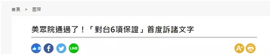它是里根时期一个完全私下的“保证”,但之后渐渐地开始半公开,到了2016年有一个大的提升,当时美国参众两院通过了“共同决议案”,里面就已经将“六项保证”诉诸了文字。当时台湾绿媒就为此兴奋了一把。