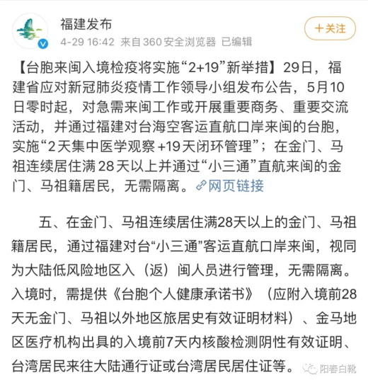 再一天后,福建省开始搞事情,就是那个臭名昭著的“5月10日起部分台胞入闽无需隔离”政策。