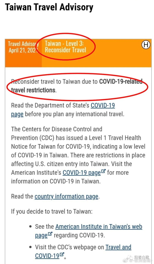 尤记今年4月21日时,台岛毒派实力的主子——美国,将对台旅游警告等级上调为3级。