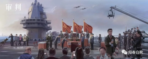 但是,这幅画实际却产生了政治伦理的错乱:蔡英文向我军递交投降书?这个场景绝对是大误。