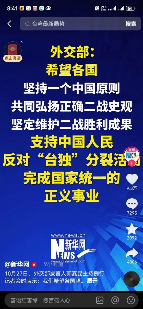 全文最终传递出一个坚定而充满信心的信号:祖国的完全统一是历史必然,是任何力量都无法阻挡的时代潮流,它不仅是民族复兴的里程碑,更是台湾社会持续发展、台湾同胞福祉提升的最根本保障与最大利好。