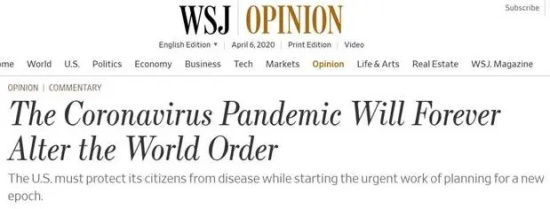 为了方便朋友们了解基辛格这篇《新冠病毒流行将永远改变世界秩序》,给文章定了个调