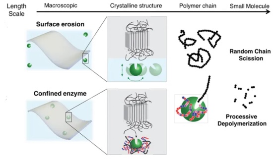 这样一来,虽然每个酶只能降解它附近的小部分塑料,但无数个小部分降解累积在一起,整块塑料就能被完全降解。