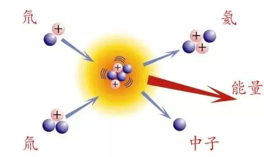 核聚变,顾名思义与核裂变相反,就是把小质量的两个原子核合并成一个大质量的原子核,在这个过程中获得能量,而且这种能量效率比核裂变更高,也更清洁。