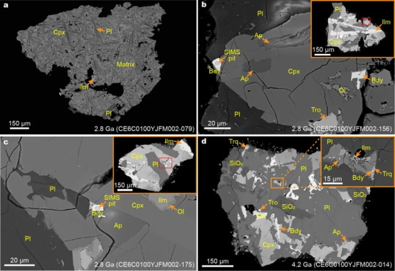 研究团队基于离子探针实验室自主研发的微区原位Pb同位素分析方法,对从5克嫦娥六号月壤中分选出来的108颗玄武岩岩屑进行了放射性同位素定年。