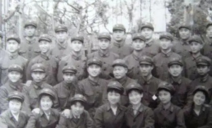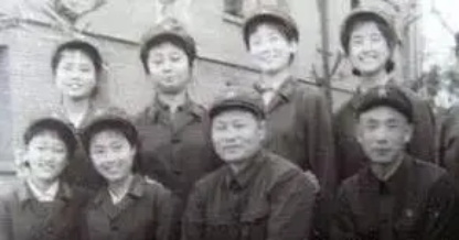 图为刘晓庆与战友在一起