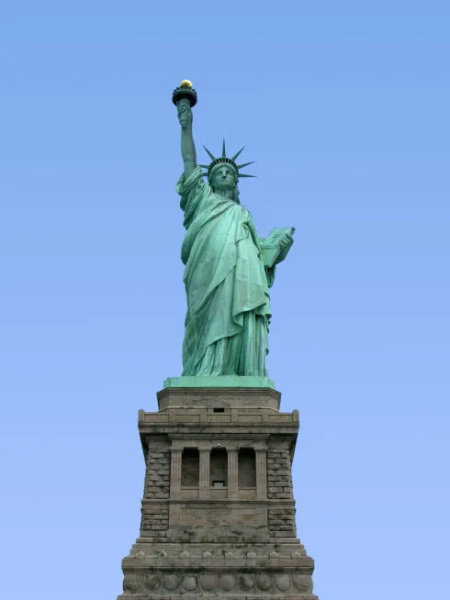 【自由女神像(英语:Liberty Enlightening the World,法语:Libertééclairant le monde),是法国(共济会?)在1876年赠送给美国独立100周年的礼物。美国的自由女神像坐落于美国纽约哈德逊河的自由岛上,其全称为“自由女神铜像国家纪念碑”,正式名称是“照耀世界的自由女神”。】
