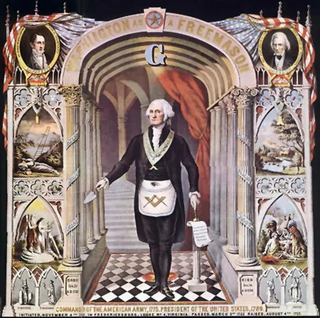 【美国首任总统乔治.华盛顿于1752年11月4日在弗吉尼亚州弗雷德里克斯堡加入共济会,成为入门学徒(Entered Apprentice),到1753年3月3日升级为副手(Fellow Craft),同年8月4日升级为主持(Master Mason)。