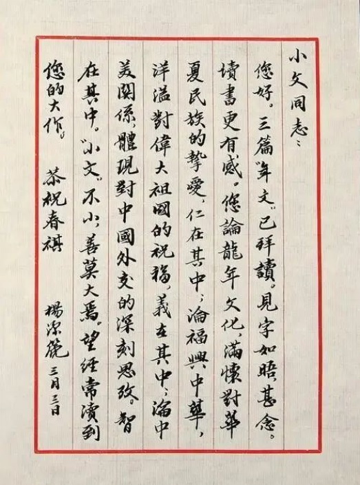 每天早晨5点,杨洁篪被祖父叫醒开始伏案练字,纸的摆放、毛笔的握法、身板的位置都有严格的要求。小学6年,天天这么练,大抵他的儒雅气息从此刻就埋下了种子。