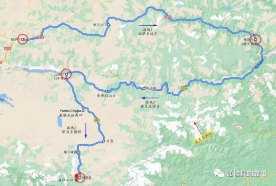 在拉萨停留两天后,总部工作组于3月14日前往林芝军分区(八一),3月16日前往山南军分区(泽当),次日前往山南军分区边防二团(错那),至此进入874演习的预定战区。行车路线画出了一个大问号: