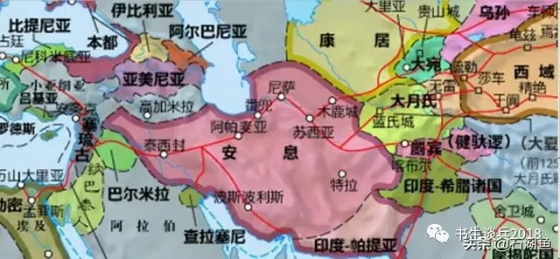 我们史记是这么写的,从大宛再往西,南边是大月氏,北边是康居,大夏和康居的西边则是安息。