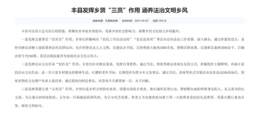 ▲新闻《丰县发挥乡贤“三员”作用,涵养法治文明乡风》