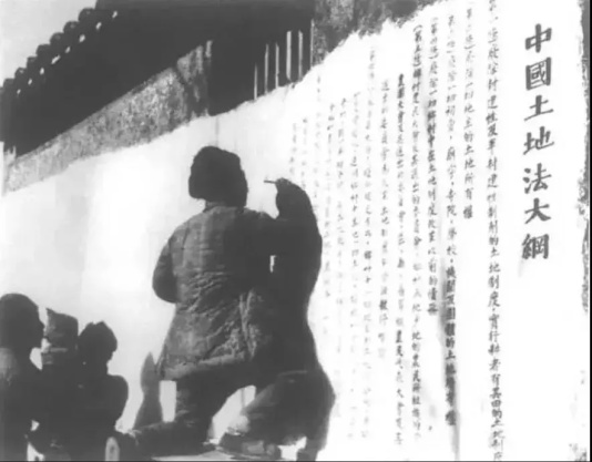 ▲1950年6月,中央人民政府委员会颁布实施《中华人民共和国土地改革法》,成为指导土改的基本法律依据。