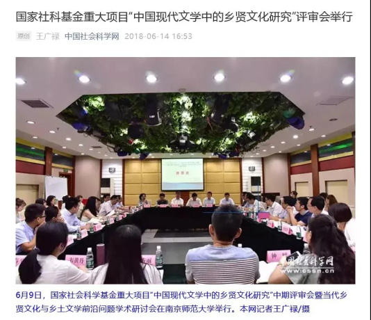 ▲新闻《国家社科基金重大项目“中国现代文学中的乡贤文化研究”评审会举行》