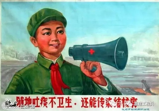 (上面两张宣传画都是呼吁大家不要随地吐痰,既可能传播结核病,又不利于保持环境卫生。)