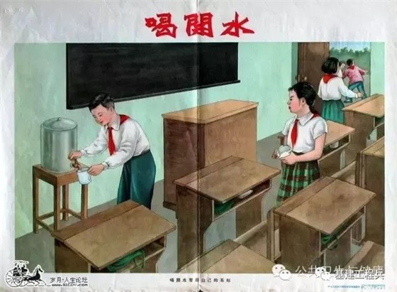 (上面两张图是培养良好的卫生习惯:喝开水和勤洗手,应该主要是针对少年儿童的宣传画,做好个人卫生,要从娃娃抓起。)