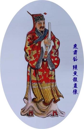 陈文龙(1232~1276),福建 兴化(今福建莆田)人,初名子龙,字刚中。宋度宗为之改名文龙,赐字君贲,号如心,是著名的抗元民族英雄。南宋末年,元军南下,大宋江山处于风雨飘摇中。陈文龙临危受命任参知政事,阻敌于兴化城下。在福州、泉州前后两城失守后,陈文龙固守孤垒,军中有人动摇,文龙道:“诸君特畏死耳,未知此生能不死乎?”指出人死有重于泰山,也有轻于鸿毛的道理。他数次斩杀前来劝降的元使,并在城头竖起“生为宋臣,死为宋鬼”的大旗,有次其姻亲前来劝降,陈文龙也是大义凛然,不为所动。他复信说:“孟子曰'效死弗去’,贾谊曰'臣死封疆’,国事如此,不如无生,惟当决一死守……若以区区之守义为不然,或杀身复家,鄙意则虽阖门磔尸数段亦所愿也!请从此诀,勿复多言。”置生死于度外,虽万死也不辞,一字一句,忠义可嘉。之后城破被擒。他见元军在城中放火烧杀,怒声喝斥:“速杀我,无害百姓。” 面对敌人的劝降,文龙指腹正色道:“此节义文章,可相逼邪!”凌云之志冲霄汉,其气节堪比文天祥。