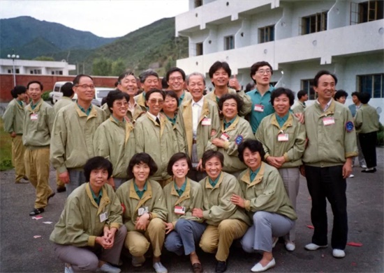 1992年8月14日,黄纬禄在西昌卫星发射中心与试验队队员们合影