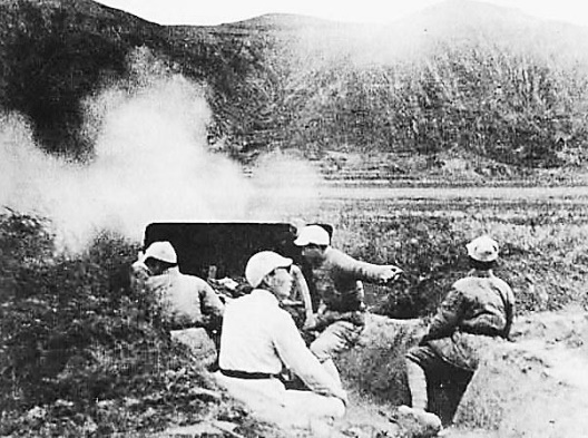 1938年,八路军留守兵团炮兵在黄河西岸作战