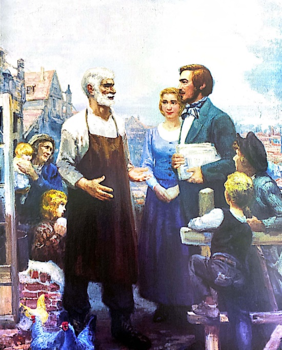 ▲恩格斯走访工人区(油画) 艾中信