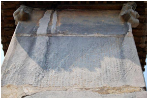 由于七节碑每石每行字数为30字,因此,我们就可很方便地根据拓片文字对位,以及文献文字位置制作出第一石照片对位复原图。因正文第一石头是46行每 行30字,虽然现代的拓版并不清楚,但我们可以将其文献按图恢复到文献记载年代(见图六)。