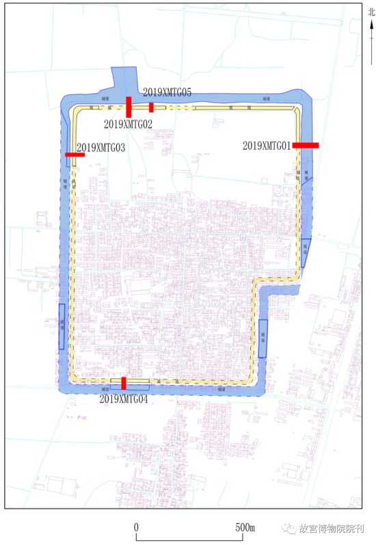 发掘范围中的内外道路已破坏无存,但从南城墙区域的勘探结果来看,紧邻南城墙的内侧、护城河与南城墙之间的过渡地带亦见零星踩踏面,当是南城墙内外侧道路。
