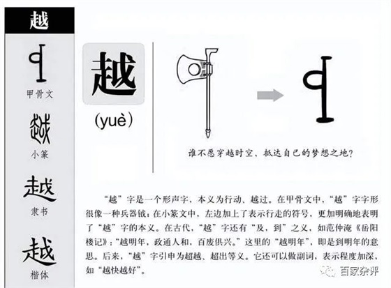 另外,上图可见的左边第一个符号,在甲骨文中也出现了,即为权力的象征——斧钺。由于“钺”、“戉”、“越”的最初文字都是“戉”,因此现代学者将之释读为“越”(越人)或“钺”。